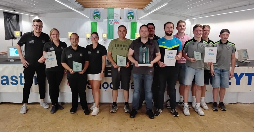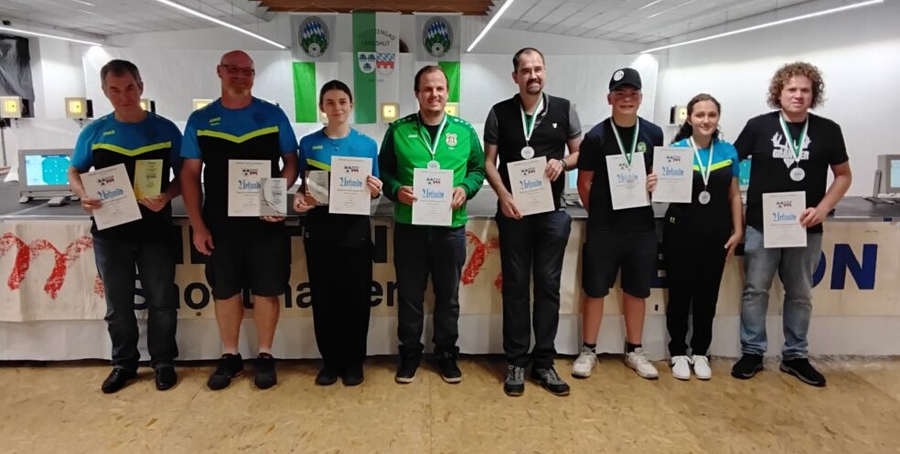 | In diesem Jahr haben sich insgesamt 44 Schützen – entweder einzeln oder als ein Teil der acht Mannschaften – aus den Landshuter Schützenvereinen an der Stadtmeisterschaft beteiligt. Die Schießtermine im 20-Schussprogramm mit Luftgewehr oder Luftpistole, aufgelegt oder freihändig, wurden bereits im April auf dem Schießstand der Wildbachschützen Landshut in Schweinbach durchgeführt. Im Juli fand nun die Preisverleihung statt, bei der die erfolgreichsten Schützen ausgezeichnet wurden. Sehr gute 22,6 Punkten reichten Anton Fröhler (Adlerhost Landshut) lediglich für den dritten Platz bei den Einzelschützen, knapp hinter dem Zweiplatzierten Roland Seiniger (Bavaria-Burg Landshut) mit 21,6 Punkten. Den von der Stadt Landshut gestifteten Wanderpokal für den besten Einzelschützen holte sich Franz Langwieser (21,1 Punkte) von den Wildbachschützen Landshut. Bei den Schützinnen ging es ähnlich eng zu: Mit 79,3 Punkten landete Celina Kathleen Jost von den Wildbachschützen Landshut knapp hinter Petra Ruhsam (Wildbachschützen Landshut) mit 78,1 Punkten. Tamara Brennhofer (Adlerhorst Landshut) sicherte sich souverän mit 64,6 Punkten den ersten Platz und bekam den Wanderpokal für die beste Einzelschützen von der Spenderin Patricia Steinberger (SPD) überreicht. Der eigenen Wertung der Stadträte sowie Mitarbeitern aus den Referaten der Stadt Landshut schlossen sich in diesem Jahr gleich vier Schützen mehr als im Vorjahr an. Als beste Einzelschützen gewann Sabrina Högl (Die Unfassbaren) mit 233,6 Punkten den neuen Wanderpokal und verwies Anja König (272,16 Punkte) aus der „SPD-Fraktion“ und Teamkollegin Elke Rümmelein (475,70 Punkte) auf die Plätze zwei und drei. Bei den Einzelschützen verteidigten sowohl Klaus Peißinger mit 82,63 Punkten als auch Dr. Thomas Haslinger mit 163,3 Punkten (beide Team „Bürgermeister“) ihre Vorjahresplatzierungen. Neuling Falk Bräcklein von der „SPD-Fraktion“ sicherte sich mit 280,62 Punkten den dritten Rang. In der Mannschaftswertung gelang dem Team „Bürgermeister“ mit Klaus Peißinger, Dr. Thomas Haslinger und Prof. Dr. Thomas Küffner mit insgesamt 682,33 Punkten das beste Ergebnis. Dahinter reihten sich die „SPD-Fraktion“ mit Anja König, Falk Bräcklein und Gerd Steinberger (890,94 Punkte) auf dem 2. Platz und die „AfD-Fraktion“ (bestehend aus Günter Straßberger, Wolfram Schubert und Markus Kretz) mit 1.163,04 Punkten auf dem dritten Platz ein. In der Mannschaftswertung geht es darum, wer die handbemalte Wanderscheibe für ein Jahr in sein Schützenheim hängen darf. Diese wurde vom Schirmherrn Helmut Radlmeier gestiftet und zeigt neben dem mittelalterlichen Landshuter Ländtor auch die Wappen der vier Schützenvereine, die die Organisation der Stadtmeisterschaft seit letztem Jahr übernommen haben. Mit 462,4 Punkten erreichten die Treue Bayern Landshut erneut den dritten Platz. Davor setzte sich die Bavaria-Burg Landshut 1 mit 388.4 Punkten. Der 1. Platz bei der Stadtmeisterschaft 2024 und damit auch die Wanderscheibe ging an Franz Langwieser, Klaus Ruhsam, Engelbert Senftl, Stefan Erlmaier und Stefan Langwieser (Wildbachschützen Landshut 1) mit einem Gesamtergebnis von insgesamt 266,6 Punkten. |