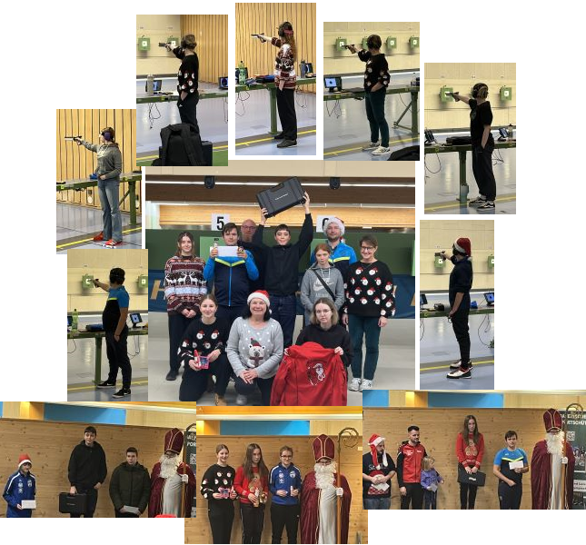 | Am 7. Dezember wurde auf der Olympiaschießanlage in Hochbrück der legendäre Nikolauscup für die Pistolenschützen ausgetragen. Die Wildbachschützen nahmen zum 10-jährigen Jubiläum des Cups mit vielen ihrer Sportlern teil und trafen dort auf ihre Trainerin Monika Wimmer vom BSSB. Sowohl die Schützen und Schützinnen aus dem Nachwuchs als auch die Betreuer, sowie Jugendleiter und Trainer Mathias Ruckerbauer ließen sich das Event nicht entgehen und nahmen selbst an den beiden Wettkämpfen teil. Mit viel Spaß, guter Laune und passendem Weihnachts-Outfit erlebten die jungen Schützen diesen Tag und sammelten dabei viel Erfahrung. Insgesamt waren es etwa 240 Starter und WIR waren mit dabei! |
