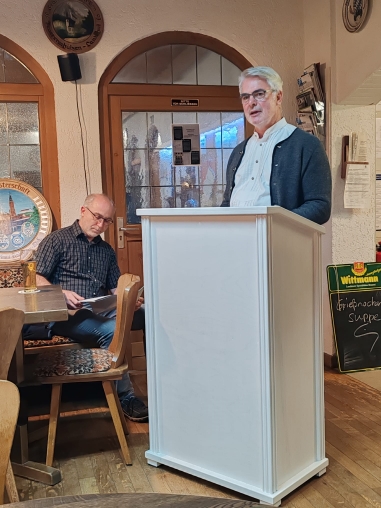 Er führte aus, dass der Aufstieg einen guten Anlass für eine gemeinsame Feier darstellt und dass dies sehr wichtig für den Zusammenhalt im Verein ist. Er betonte aber auch, dass die Stadt Landshut an ihre Schützenvereine denkt. Er stellte fest, dass der Schießsport nicht überall zu den imageträchtigen Sportarten gehört. Allerding ist der Schießsport wirklich ein Leistungssport, bei dem es auf Konzentration, Technik und Ausdauer ankomme. Des weiteren fördere der Schießsport auch den verantwortungsvollen Umgang mit den Sportgeräten. Er sprach auch darüber, wie wichtig Schützenvereine für unsere Identität, unser Brauchtum und unsere Kultur seien. Herr Dr. Haslinger richtete die besten Grüße von Herrn Oberbürgermeister Putz aus. Sodann sprach Herr Dr. Haslinger über den Rückgang des Vereinslebens in Landshut und der Region und fand es schön, dass Vereine wie die Wildbachschützen Landshut ihren Mitgliederstand ausbauen konnten und zusätzliche einen großen Anteil an Jugend vorweisen könnten, wie dies nur in einem funktionierenden Verein, der Sport und Tradition richtig verbindet, möglich sei. Herr Dr. Haslinger hat noch von Herrn Oberbürgermeister Putz ausrichten lassen, dass die Vereine und das Ehrenamt ein wichtiger Bestandteil der Städtischen Kultur sind und dass die Stadt Landshut immer ein offenes Ohr für die Anliegen der Vereine hat. Herr Dr. Haslinger fügte noch persönlich dazu, dass Landshut keine seelenlose Vorstadt von München ist, sondern eine Stadt mit einer eigenen Identität und einer eigenen Kultur deren Erhalt ihm sehr am Herzen liege. Dabei stellen die Vereine ein wichtiger Baustein dar. Er dankte dem Verein nochmals für die Einladung und versprach zum Heimwettkampf der Wildbachschützen, wenn zeitlich möglich, zu kommen, um die Mannschaft der Wildbachschützen nach Kräften anzufeuern.